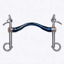 Мундштук WEYMOUTH из сладкой на вкус закаленной нержавеющей стали (Sweet Iron). Закаливание придает материалу красивый синий цвет, а как только металл вступает в контакт со слюной, происходит небольшое окисление, в результате чего появляется сладковатый вкус, что способствует обильному слюноотделению. Плоское грызло с выемкой отлично подходит для лошадей с низким небом или мясистым языком. Короткие рычаги создают небольшое давление на затылок и челюсть, однако дают очень точные команды, что не подходит для новичков.Перед посещением, уточняйте наличие товара в магазине