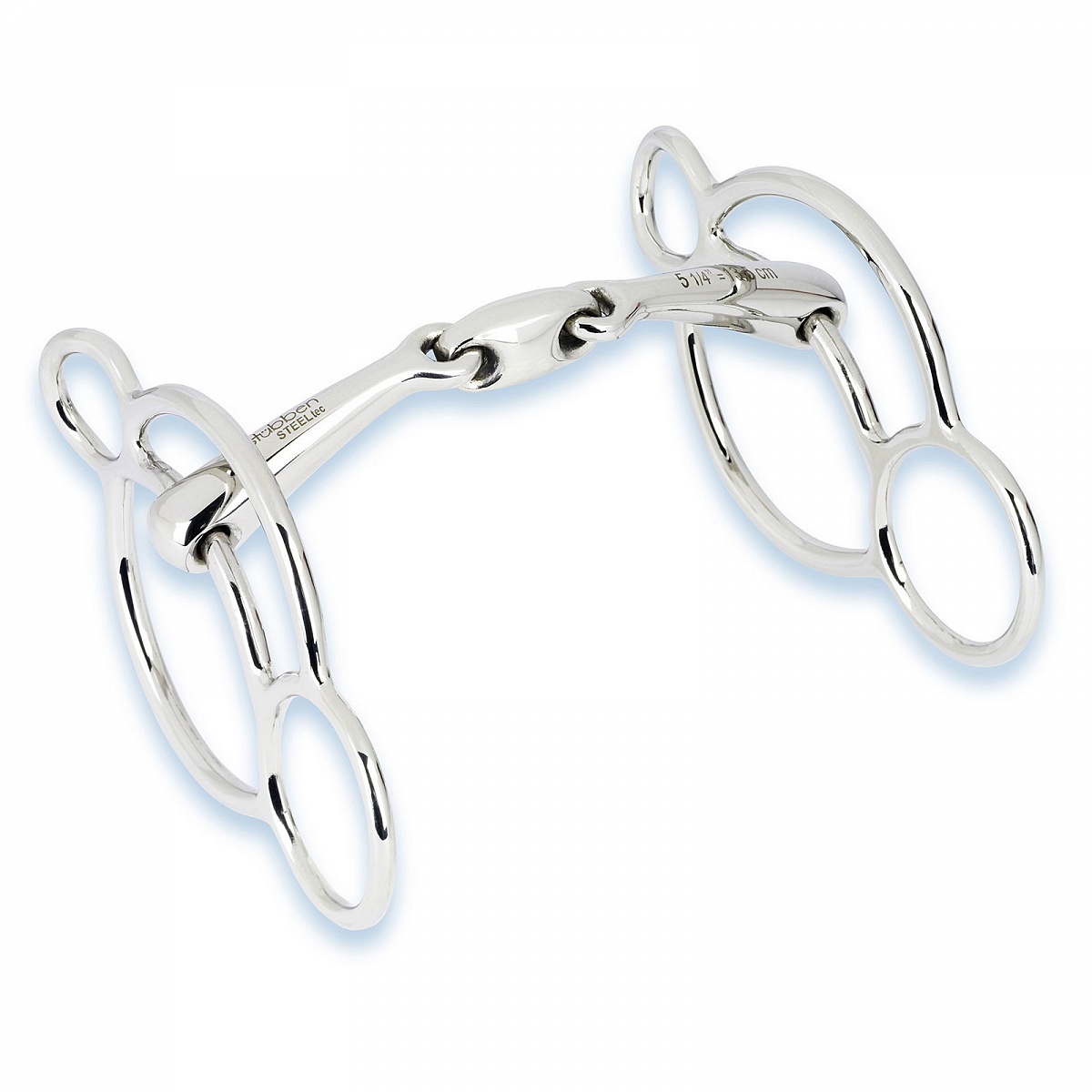 Олимпийский пелям с блокирующимся грызлом. Хорошо подходит для конкура, где очень важно, чтобы лошадь быстро отвечала на требования всадника, не теряя при этом скорости движения. Подвижные кольца имеют скользящий эффект, помогают расслабить лошадь в затылке, что облегчает управление. В отличие от классических олимпийских пелямов не имеет черезмерного давления на затылок, натяжение поводьев равномерно передается и к трензелю, и к рычагам. Можно использовать с одним или двумя поводьями.Перед посещением, уточняйте наличие товара в магазине