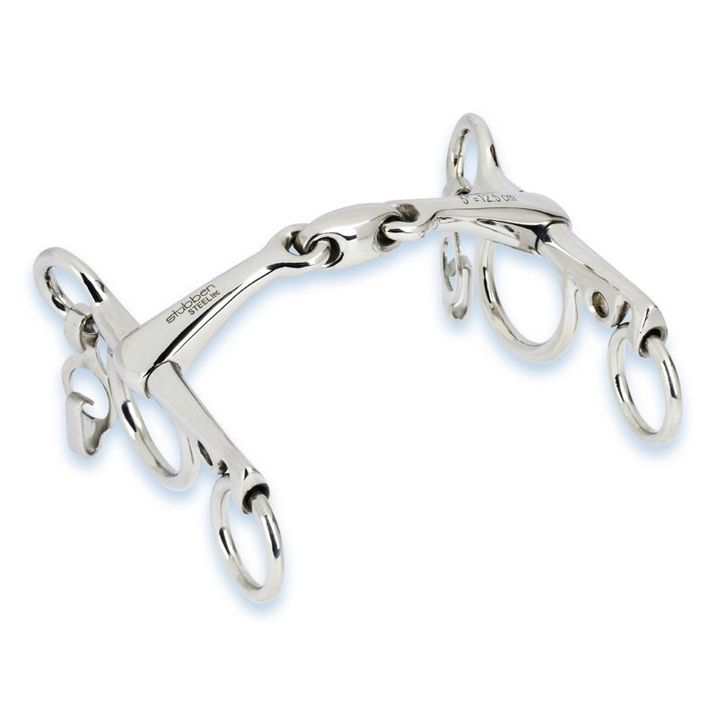 Классический рычажной пелям из нержавеющей стали. Небольшие рычаги усиливают натяжение повода, создают дополнительное воздействие на нижнюю челюсть и заставляют лошадь быстрее реагировать на команды всадника. Рекомендуется использовать с переходником или двумя поводьями.Перед посещением, уточняйте наличие товара в магазине