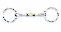 Классический трензель восьмерка с медной конфеткой. Медь создаёт приятный сладкий привкус во рту и способствует обильному слюноотделению, стимулируя лошадь лучше отжевывать трензель во время работы. Восьмёрка равномерно распределяет давление на уголки рта, беззубый край и язык, классические кольца позволяют лошади приспособить положение трензеля во рту и моментально "сбрасываются" в нейтральную позицию при отдаче повода.Нет в наличии, ожидается поступление.