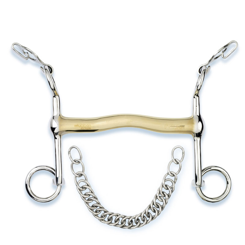 Мундштук с грызлом из сладкого сплава SWEET COOPER, который состоит на 89% из меди и не содержит никель. Медь создаёт приятный сладкий привкус во рту и способствует обильному слюноотделению, стимулируя лошадь лучше отжевывать железо во время работы. Короткие рычаги действуют мягко, но передают малейшее движение рук всадника. Комфортное анатомическое грызло с вырезом под язык. Подходит для лошадей с низким или чувствительным нёбом.Нет в наличии, ожидается поступление.