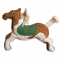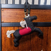 Игрушка-антистресс для лошадей скучающих в деннике. Игрушка имеет застежку-липучку под хвостом, которую можно открыть, чтобы заменить пластик новой пластиковой бутылкой такого же размера. Шея и голова игрушки наполнены джутом - их можно грызть и топтать без потери формы. С помощью небольшой веревки на холке игрушку можно прикрепить в деннике.Перед посещением, уточняйте наличие товара в магазине