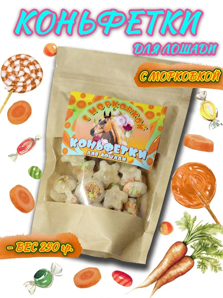 | Мини Коньфетки для лошади ручной работы "С кусочками моркови", р.250г. | 414 р. | 373 р. | Купить | |
