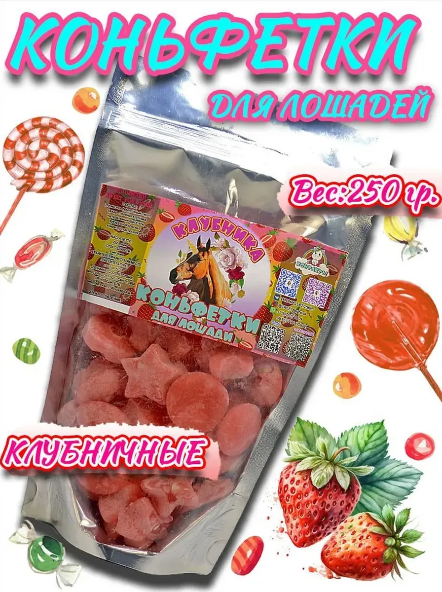 | Мини Коньфетки для лошади ручной работы "Клубничные", р.250г. | 414 р. | 373 р. | Купить | |