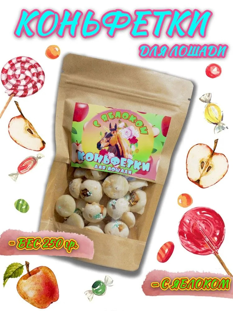 | Мини Коньфетки для лошади ручной работы "С кусочками яблок", р.250г. | 414 р. | 373 р. | Купить | |