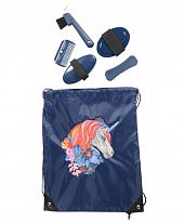 Симпатичный детский набор для груминга в удобной сумочке. Включает небольшую смахивалку, щётку, крючок для копыт, пластиковую расческу и скребницу.Нет в наличии, ожидается поступление.