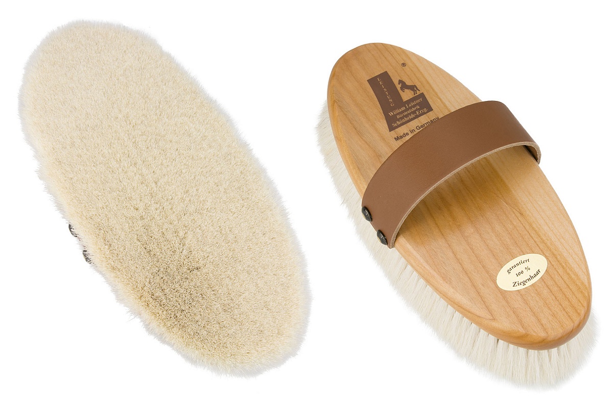 Мягкая щетка для тела и морды. Полированный корпус из вишневого дерева, кожаная ручка, нежная щетина из мягкого козьего ворса.Нет в наличии, ожидается поступление.