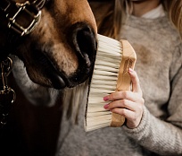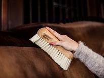 Щётка смахивалка с необычной изогнутой ручкой - очень удобно лежит в руке. Прекрасно удаляет пыль, опилки и грязь с шерсти лошади. Длинная мягкая щетина с эффектом полировки. Подходит для морды и других нежных частей тела.Нет в наличии, ожидается поступление.