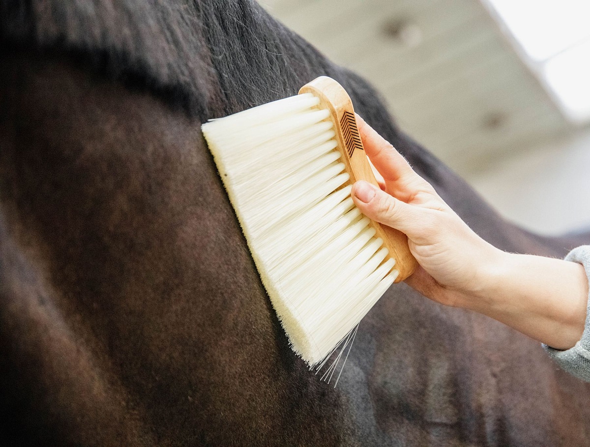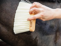 Щётка смахивалка с необычной изогнутой ручкой - очень удобно лежит в руке. Прекрасно удаляет пыль, опилки и грязь с шерсти лошади. Длинная щетина с эффектом полировки.Нет в наличии, ожидается поступление.