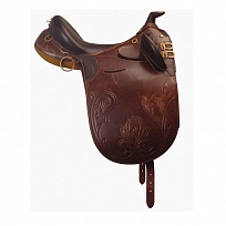 Седло выполнено в оригинальном стиле, с узором на крыльях, большими кольцами для седельных сумок и другой поклажи. Глубокая посадка, высокий рожок на передней луке и большие коленные упоры обеспечивают максимальный комфорт при длительных прогулках.Нет в наличии, ожидается поступление.